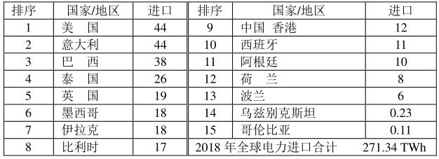 2018年全球電力進口國的貿(mào)易量(單位:TWh)