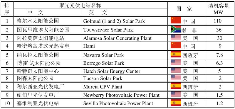 全球十大平板光伏電站