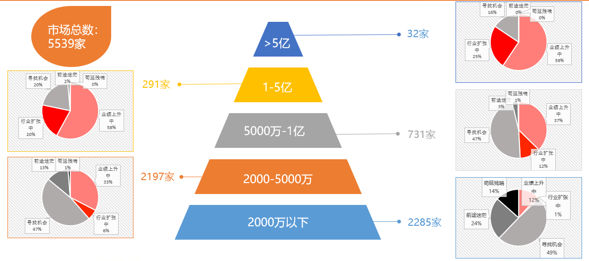 我們把盤柜廠的數(shù)據(jù)拿出來仔細分析了一下,行業(yè)里有5000多家經(jīng)營活躍的盤柜廠,2000萬以下的有2200家,2000萬到5000萬的又有2000多家,5000萬到一個億的有700多家,1億到5億的有不到300家,5億以上的只有32家,從數(shù)據(jù)可以看出來這是一個非常分散的行業(yè)。