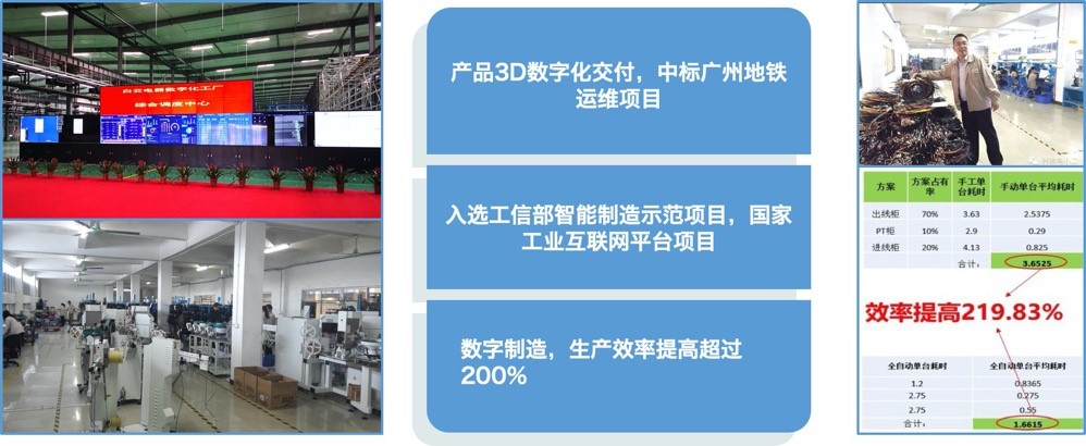 【白云電器】白云和利馳從2000年開始合作,最開始使用的利馳SuperWORKS軟件,白云的數(shù)字化工廠建設(shè)投資非常大,幾個億的投資,其中最關(guān)鍵的兩個工序,線束和母排都采用利馳的解決方案。線束的下線效率、接線的效率提高了219%。更重要的是白云通過和利馳的合作,有了三維模型,有了柜體的三維仿真數(shù)據(jù),廣州地鐵有個配電設(shè)備的維護平臺,地鐵設(shè)備維護必須基于BIM模型,白云的電氣設(shè)備三維模型可以輕松轉(zhuǎn)化為BIM模型,在這方面利馳給白云做了大量的支持,基于此白云就可以承接廣州地鐵售后維護的項目。白云電器通過做數(shù)字化已經(jīng)實現(xiàn)了制造競爭力很強,運維服務(wù)競爭力更強。