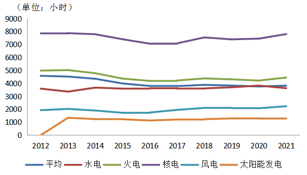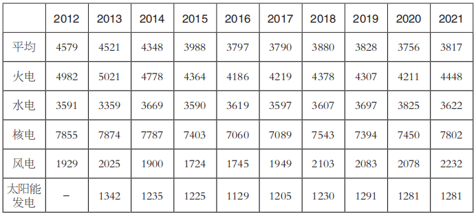 表4 2012~2021年發(fā)電設(shè)備利用小時(shí)數(shù)(單位:小時(shí))
