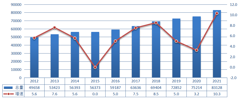 2021年是黨和國(guó)家歷史上具有里程碑意義的一年。面對(duì)百年變局和世紀(jì)疫情,我國(guó)經(jīng)濟(jì)發(fā)展和疫情防控保持全球領(lǐng)先,全面深化改革開(kāi)放,構(gòu)建新發(fā)展格局邁出新步伐,高質(zhì)量發(fā)展取得新成效。2021年,我國(guó)國(guó)內(nèi)生產(chǎn)總值(GDP)比上年增長(zhǎng)8.1%,兩年平均增長(zhǎng)5.1%;經(jīng)濟(jì)規(guī)模突破110萬(wàn)億元,穩(wěn)居全球第二大經(jīng)濟(jì)體,我國(guó)人均GDP達(dá)到80976元(按年平均匯率折算達(dá)12551美元),超過(guò)世界人均GDP水平。