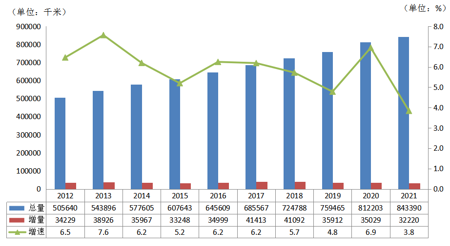 圖16 2012~2021年220千伏及以上輸電線路回路長(zhǎng)度情況
