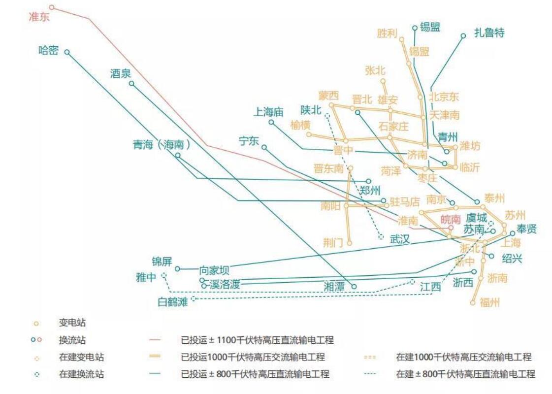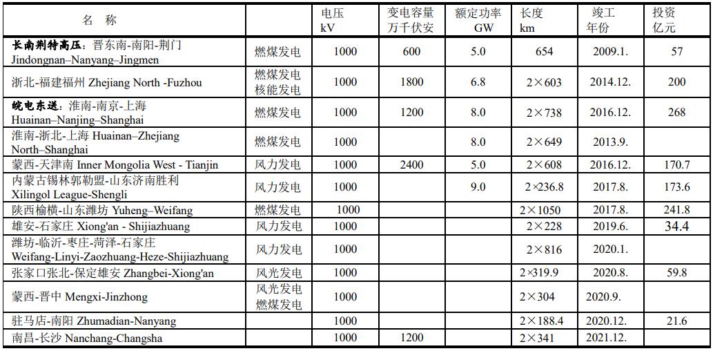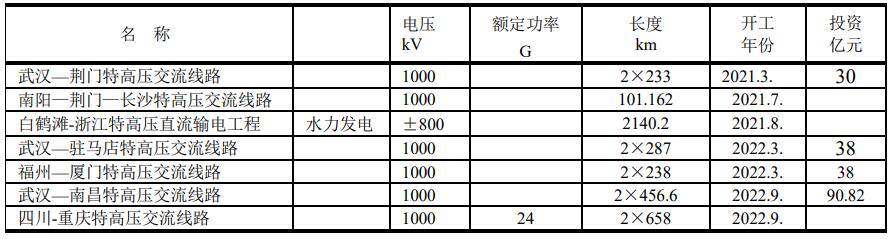 在建和待建的超高壓輸電線路
