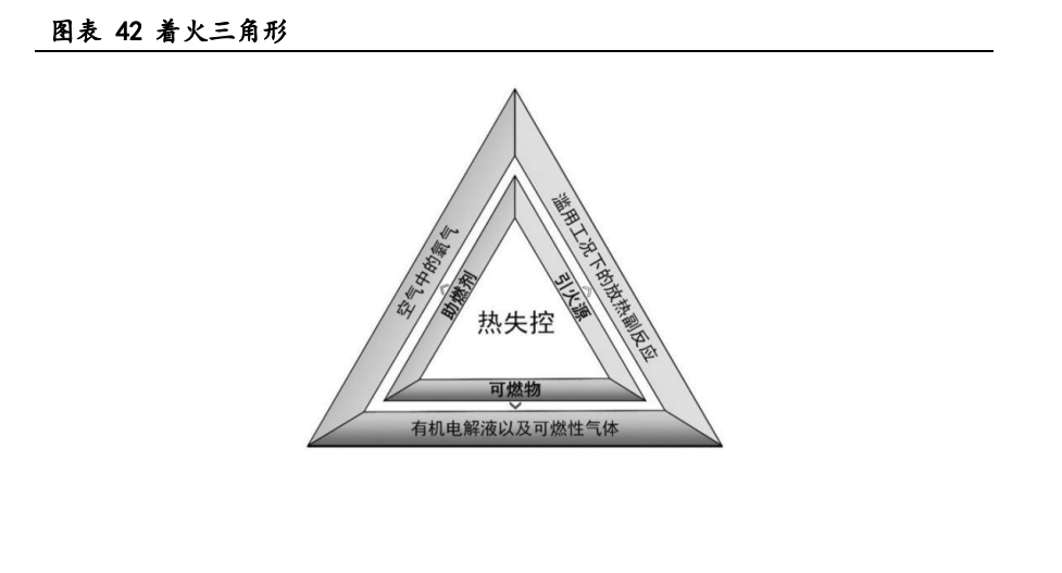 在電池系統(tǒng)熱失控蔓延無法遏制時,消防滅火措施需要阻斷"著火三角形”三個要 素中的一個或多個,來達(dá)到保證火災(zāi)安全的目的。合理的熱失控蔓延抑制措施需要考 慮措施的可行性。
