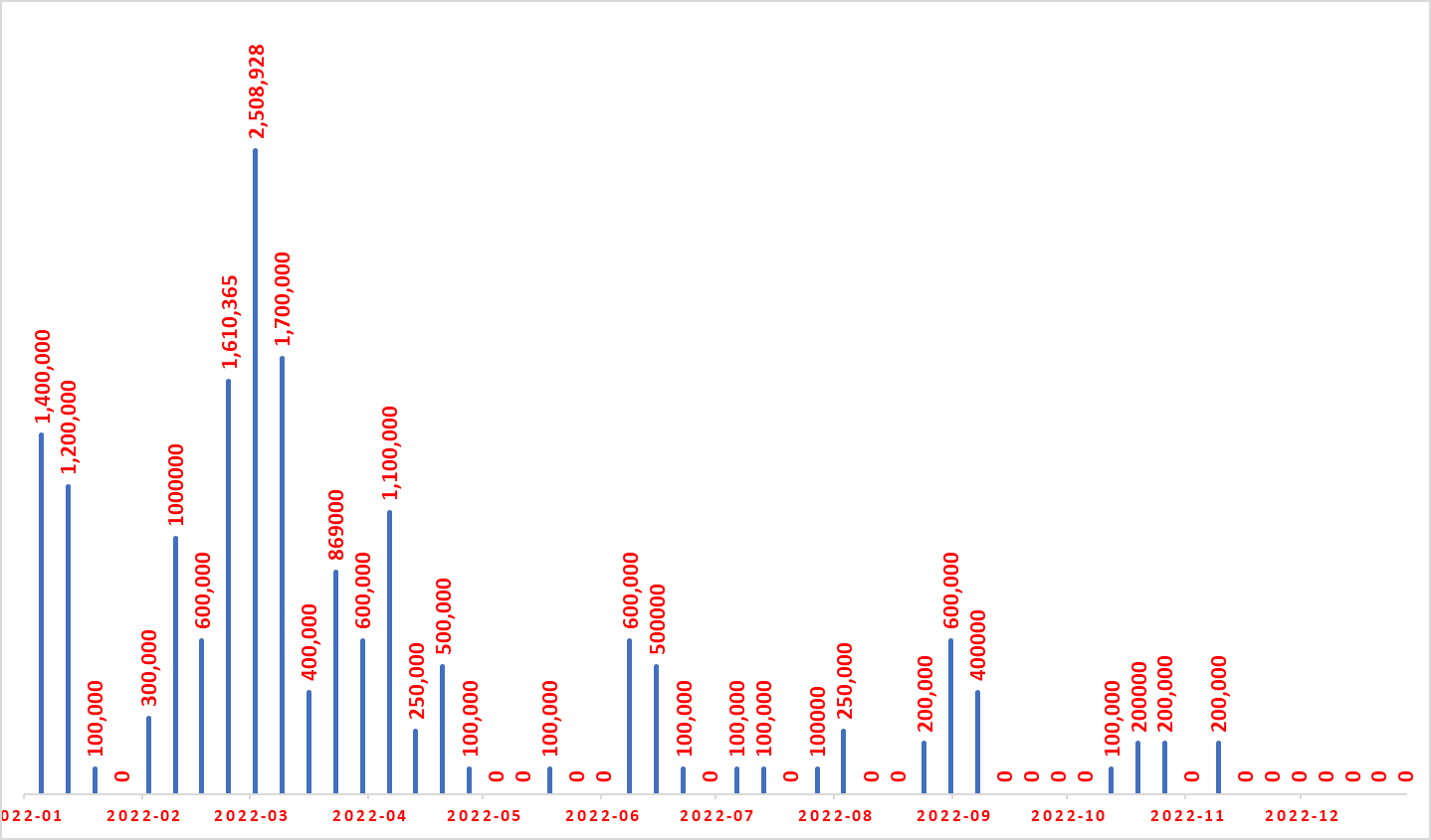 2022年SPUT每周采購(gòu)情況(縱軸單位:磅)
