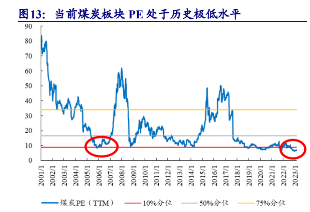 2.1、從PE看,當前煤炭板塊PE處于極低水平