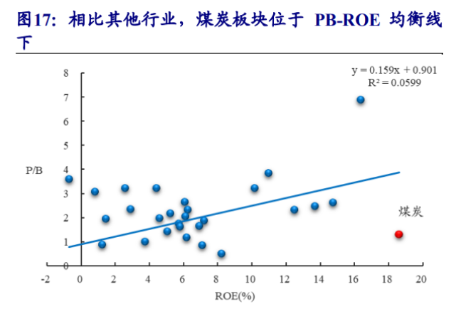 2.3、從PB-ROE看,煤炭行業(yè)估值明顯折價