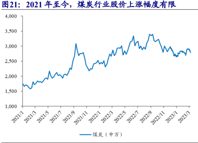 股價僅限盈利驅動,且市場認為高盈利不可持續(xù)。2021-2022年,煤炭板塊較年初分別上漲10.9%和43.6%,2022年12月31日,煤炭板塊較2021年1月4日上漲51.8%。2021年,煤炭上市公司歸母凈利1600億元,同比增長75.6%,2022年前三季度,煤炭上市公司歸母凈利2058億元,同比增長71.3%。煤炭板塊上漲僅限盈利驅動,估值尚未提升,且煤炭板塊股價上漲幅度遠不及煤企利潤增長幅度,市場認為煤企高盈利不可持續(xù)。2021-2022年,煤炭板塊股價上漲主要來自煤企業(yè)績增長,且股價上漲幅度遠不及業(yè)績增長幅度,這使煤炭板塊估值持續(xù)低位。但我們也應該看到,經過多年的發(fā)展,煤炭行業(yè)已不再是高污染的產能過剩行業(yè),能源安全背景下,煤炭作為我國主體能源在短期內不會改變。而“雙碳”政策也限制了煤炭的產能周期,正因為煤炭具有較高的碳排放,未來產能將變的更為稀缺,煤炭盈利有望維持在高水平,煤炭價值或將被逐步發(fā)現(xiàn)。