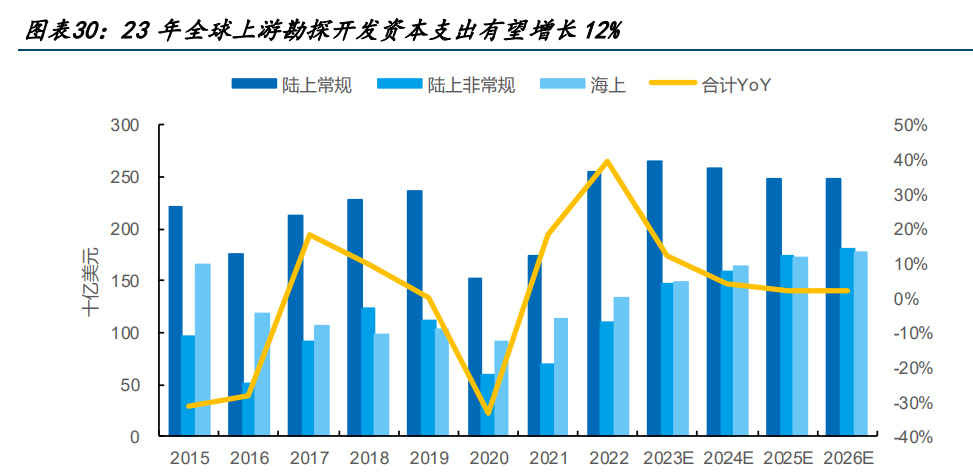 3.2 23 年全球上游勘探開采資本開支有望增長,油服設備行業(yè)景氣度繼續(xù)提升