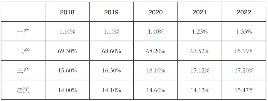 表3 2018—2022年全社會用電結(jié)構(gòu)