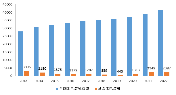 圖11 2013—2022年水電裝機(jī)和新增裝機(jī)情況(單位:萬(wàn)千瓦)