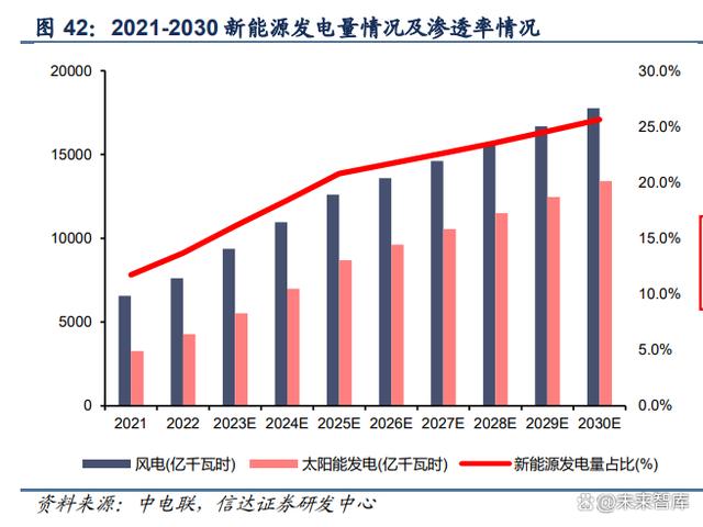風(fēng)光電量仍將保持高增速增長,滲透率有望年內(nèi)突破 15%。2023 年 4 月 6 日,國家能源局 發(fā)布《2023 年能源工作指導(dǎo)意見》,提出“非化石能源發(fā)電裝機(jī)占比提高到 51.9%左右, 風(fēng)電、光伏發(fā)電量占全社會(huì)用電量的比重達(dá)到 15.3%。”的目標(biāo)。我們假設(shè) 2023 年年內(nèi)新 增風(fēng)電和光伏并網(wǎng)裝機(jī)可達(dá)18000萬千瓦左右,根據(jù)測算(基準(zhǔn)情景下),風(fēng)電與光伏發(fā)電 量之和的占比可提升至 16.1%。 風(fēng)光持續(xù)快速滲透,消納壓力或?qū)@現(xiàn)。我們認(rèn)為,高比例新能源接入下的電網(wǎng)將面臨系 統(tǒng)性成本快速抬升的問題,輔助服務(wù)費(fèi)用或?qū)⒊霈F(xiàn)指數(shù)式的上升。以國內(nèi)情況為例,2019 年全國新能源電量占比為 7%,國家能源局公布全國輔助服務(wù)費(fèi)用占全社會(huì)電費(fèi)比例為 1.47%;而根據(jù)山西電力現(xiàn)貨市場的經(jīng)驗(yàn),在 2022年新能源電量占比達(dá)到 16%時(shí),其輔助 服務(wù)電費(fèi)占全社會(huì)電費(fèi)比例為5%左右。因此,在新能源滲透率翻一番時(shí),輔助服務(wù)費(fèi)用即 系統(tǒng)調(diào)節(jié)成本出現(xiàn)了接近翻兩番的情況,呈指數(shù)性抬升。