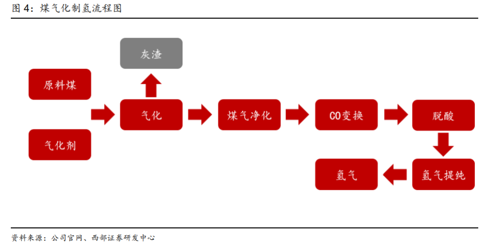 灰氫成本優(yōu)勢明顯,綠氫零碳排放具備發(fā)展?jié)摿?。目前氫氣的制備主要技術(shù)工藝有熱化學(xué) 制氫和水電解制氫,其中熱化學(xué)制氫技術(shù)主要有化石能源制氫及化工原料制氫?;茉?制氫包括水煤氣制氫、天然氣重整制氫等,目前已經(jīng)進(jìn)行工業(yè)生產(chǎn),技術(shù)相對成熟,但用 此法制氫發(fā)電,能量轉(zhuǎn)換效率低,經(jīng)濟(jì)性差,CO2 排放量大。根據(jù)中國氫能聯(lián)盟研究院研 究顯示,2019 年我國氫氣生產(chǎn)中有超過 60%的氫氣是煤制氫。在未來一段時期內(nèi),由于 資源稟賦和新制氫技術(shù)尚未成熟,煤制氫仍是我國氫氣的主要來源。