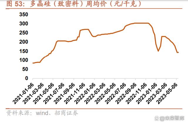 硅料價格持續(xù)下降,新建產能規(guī)模龐大,有望推動光伏裝機進一步增長。2022 年 12 月開始,隨著硅料產能的逐步釋 放,多晶硅和組件價格開始大幅回落。2023 年 2 月,硅料價格出現輕微反彈,主要系需求回暖+開工補庫所致,目前 已重新進入下行通道。截至 2023 年 5 月 17 日,多晶硅(致密料)價格為 143 元/千克,相較 2022 年 11 月 30 日的 高點 295 元/千克下降 51.53%;單面單晶 PERC 組件價格(182mm)為 1.66 元/瓦,相較 2022 年 11 月 23 日的高 點 1.97 元/瓦下降 15.74%。硅業(yè)分會表示,2023 年國內多晶硅產量保守估計有 146 萬噸,加上進口多晶硅可達 156 萬噸,這些硅料已經足夠 600GW 光伏裝機,已遠超 2023 年的全球光伏裝機量需求,過剩的產能有望推動硅料和組 件價格進一步下行,提升運營商的裝機意愿。