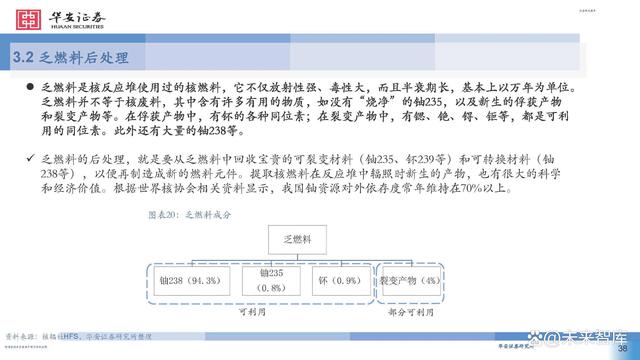 乏燃料是核反應(yīng)堆使用過的核燃料,它不僅放射性強(qiáng)、毒性大,而且半衰期長,基本上以萬年為單位。 乏燃料并不等于核廢料,其中含有許多有用的物質(zhì),如沒有“燒凈”的鈾235,以及新生的俘獲產(chǎn)物 和裂變產(chǎn)物等。在俘獲產(chǎn)物中,有钚的各種同位素;在裂變產(chǎn)物中,有鍶、銫、锝、钷等,都是可利 用的同位素。此外還有大量的鈾238等。