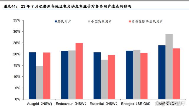 23 上半年澳洲電價處于環(huán)比上升階段,AER 預計下半年起電價上升 20%~25%。盡管相較 于 22 年,23 年眾多能源問題有所緩解,但是長期來看,煤炭和天然氣供應仍存在不利因 素,例如國際能源價格仍然偏高,Liddell 發(fā)電站于 23 年 4 月關閉導致煤電減少,澳洲國內(nèi) 天然氣供應逐漸減少等。根據(jù) AER 統(tǒng)計,23Q2 昆士蘭州、新南維爾州、維多利亞州、南 澳大利亞州四州的電力現(xiàn)貨價格分別達到 139/148/96/136 澳元/MWh,同比-59.6%/-53.9% /-60.2%/-51.4%,雖然有所下降,但是均仍顯著高于前期 21 年全年平均水平(72.63 澳元 /MWh)。由于通脹、俄烏沖突和電廠老化造成的批發(fā)價格上升,下半年電價或仍處于上升 通道。根據(jù) AER,23 年 7 月 1 日起,電價預計將有同比 20%~25%的漲幅,主要影響對象 是家庭用戶和小商販,或將直接刺激家庭儲能安裝需求。