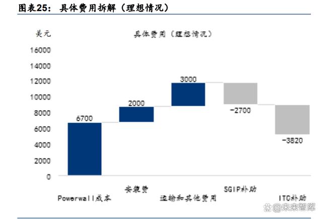 NEM 3.0:平均電力回購價格預計下降 75%,補貼下降反提升戶儲安裝經(jīng)濟性。據(jù)加州太 陽能和儲能公司(CALSSA)協(xié)會報道,NEM 3.0 協(xié)議將導致加州的平均太陽能電力回購 價格從度電 0.30 美元下調(diào)至 0.08 美元,相當于 75%的下降。在此基礎上,根據(jù) Energysage 和 NEM 3.0 提案的預測,在 NEM 3.0 政策下僅購買戶用光伏設備的回本周期將由原來的 5-6 年延長到 9 年左右。NEM 3.0 對于家庭用光伏的支持力度大大削減,而儲能的經(jīng)濟性得 以體現(xiàn)。由于基礎電價隨著一天中時間不同而變化,安裝戶儲意味著用戶可以在回購電價 低的時候儲存多余的電量,在電價高的時候向電網(wǎng)回輸電力,波動性增加帶來經(jīng)濟性提升。 據(jù) NEM 3.0提案預測,安裝戶儲的回本周期最低可達 6.98年,低于僅安裝光伏的回本周期, 配儲經(jīng)濟性體現(xiàn),我們預計 2023 年 4 月后安裝的戶用光伏配儲比例將得到較大幅度提升。