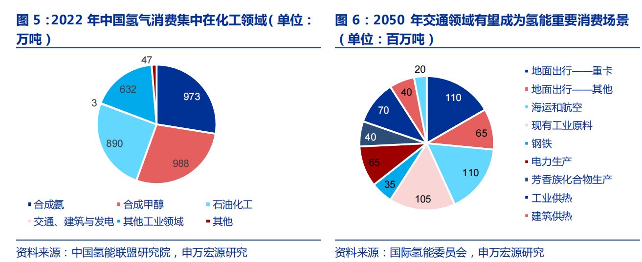 1)氫氣作為清潔能源,在碳中和愿景下需求較大:根據(jù)中國(guó)氫能聯(lián)盟研究院,預(yù)計(jì)到2050 年全球氫氣需求量將達(dá)到6.6 億噸,其中中國(guó)約為1.95 億噸(2022 年僅0.35 億噸)。