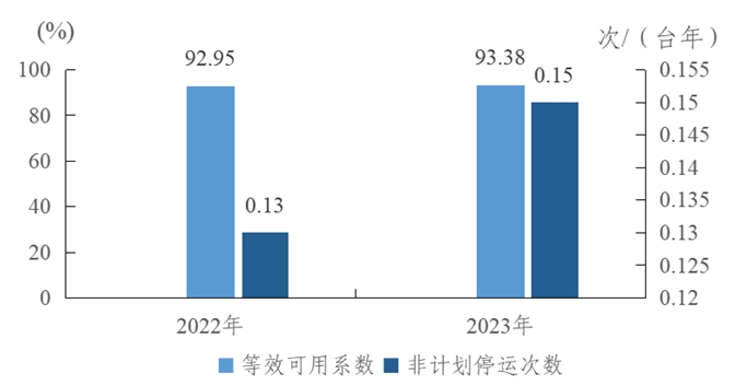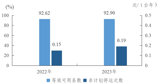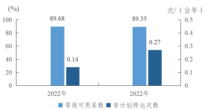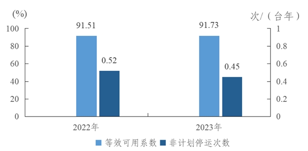 圖2 2022-2023年燃煤機(jī)組主要運(yùn)行可靠性指標(biāo)