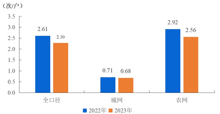 全國用戶平均停電頻率2.30次/戶,同比減少0.31次/戶,其中,城網(wǎng)0.68次/戶,農(nóng)網(wǎng)2.56次/戶。城網(wǎng)地區(qū)與農(nóng)網(wǎng)地區(qū)相差1.88次/戶。