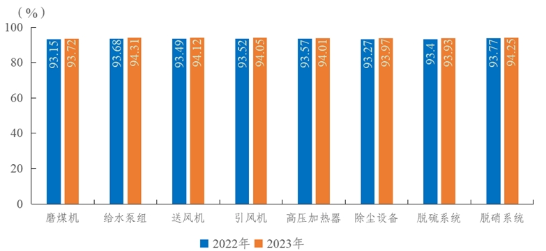 圖3 2022-2023年燃煤機(jī)組八類輔助設(shè)備可用系數(shù)