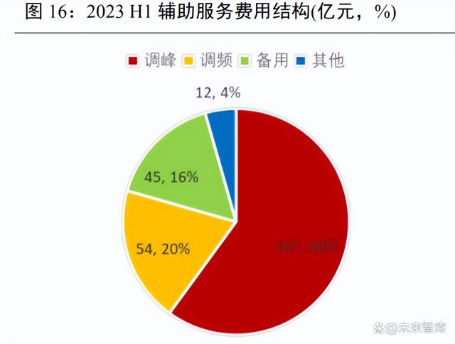 火電輔助服務(wù)收費(fèi)仍有較大增長(zhǎng)空間,與容量電費(fèi)一起抬高火電機(jī)組收入底部空間。2023年上半年,我國(guó)電力輔助服務(wù)收費(fèi)合計(jì) 278 億元,其中:調(diào)峰補(bǔ)償167 億元,占比60.0%;調(diào)頻補(bǔ)償 54 億元,占比 19.4%;備用補(bǔ)償 45 億元,占比 16.2%,其他輔助服務(wù)收費(fèi)12億元,占比 4.4%?;痣姍C(jī)組仍是輔助服務(wù)的主要提供方,2023 年上半年火電企業(yè)獲得輔助服務(wù)補(bǔ)償254 億元,占比 91.4%。即,我國(guó) 2023 年輔助服務(wù)費(fèi)年化 556 億元,其中火電獲得508億元。