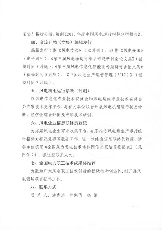 關(guān)于印發(fā)2017年全國風(fēng)力發(fā)電技術(shù)協(xié)作網(wǎng)工作安排的通知