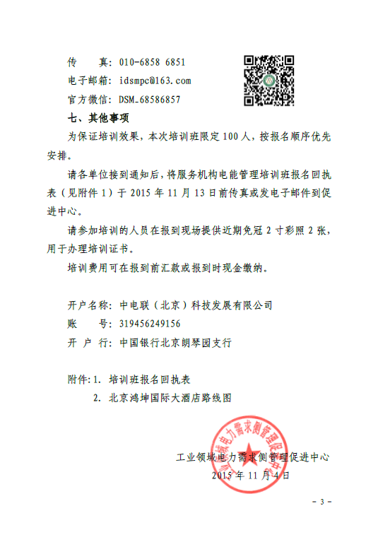 附件:1、關(guān)于舉辦工業(yè)領(lǐng)域電力需求側(cè)管理電能管理培訓(xùn)班通知(工電促[2015]11號)2、培訓(xùn)班報名回執(zhí)表